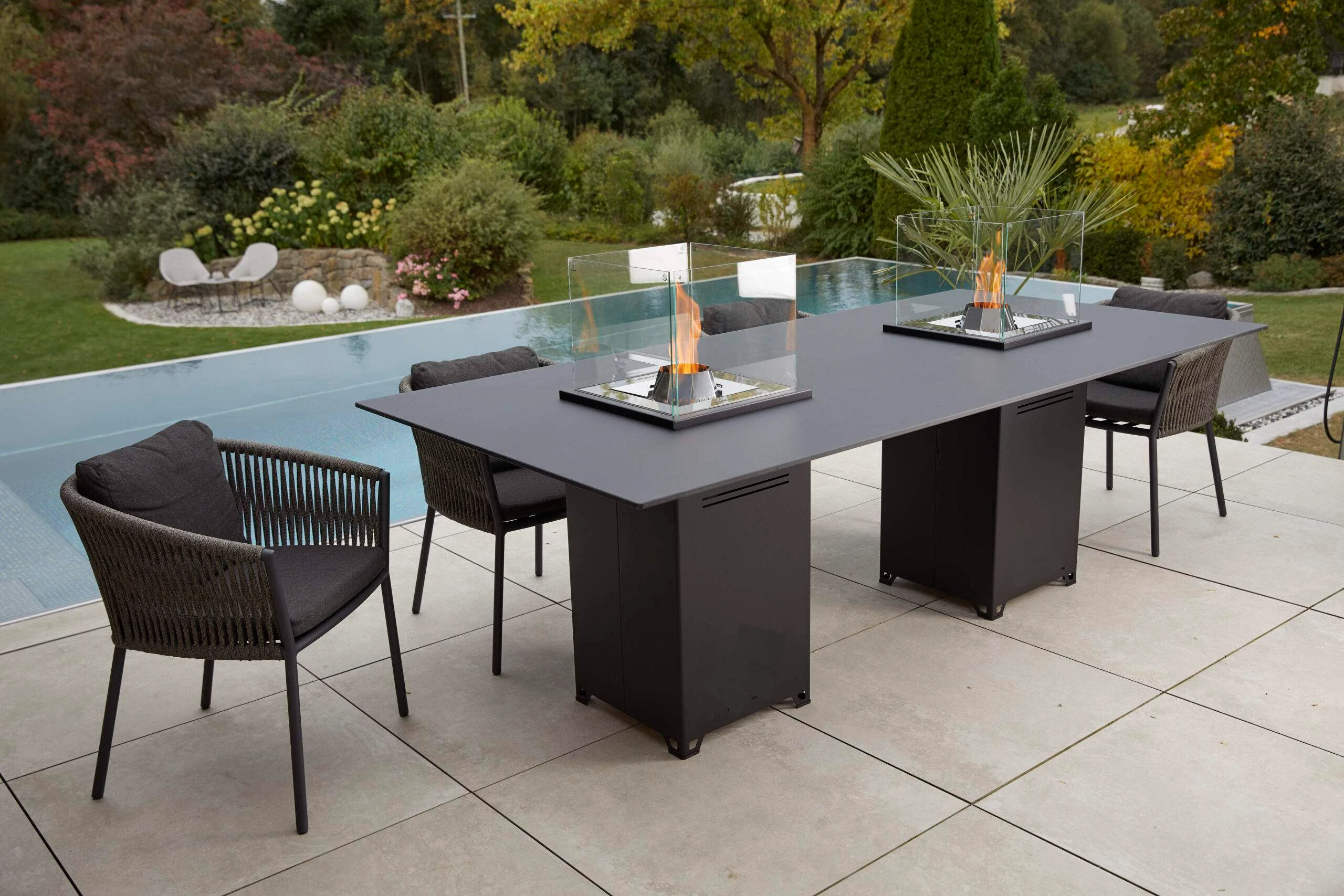 Tiene una elegancia intemporal, se puede utilizar todo el año y presenta muchas combinaciones posibles. Esta estufa de exterior, que funciona con pellets, es el blanco de todas las miradas en zonas al aire libre y fascina con su sensacional juego de llamas. Con la adición de mesas, FUOCOGREEN se puede convertir en un moderno mueble de terraza con suficiente espacio para bebidas y aperitivos. En el jardín, en la terraza o junto a la piscina, FUOCOGREEN es un punto de encuentro ideal para veladas acogedoras.